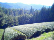 道は平坦になり軽快に進むと左に展望が開けた茶畑で、二組のご夫妻ハイカーに出会う。この方たちとは首なし地蔵までの間抜き抜かれつで歩く。