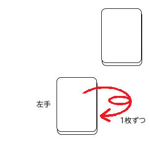 9. 演者が、裏の山をとって一枚ずつあらためますが、覚えてもらったカードは現れません。