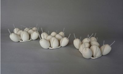 Stoneware (unglazed with slip), thin iron rods, silicone tubing.